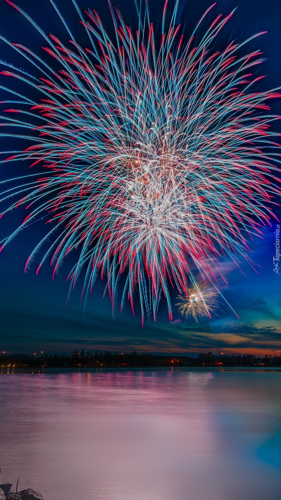 Edytor tapety: Sylwester z fajerwerkami nad jeziorem