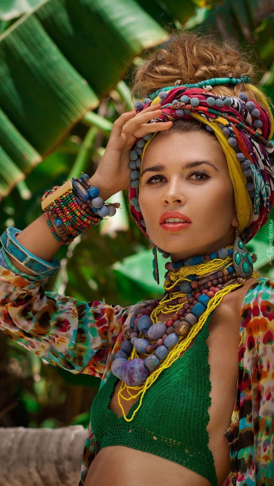 Edytor tapety: Kobieta w turbanie i kolorowej biżuterii
