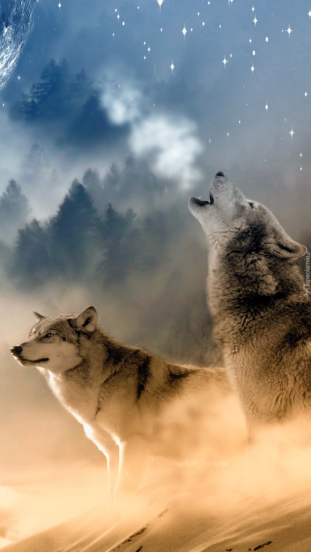 Edytor tapety: Wyjący wilk