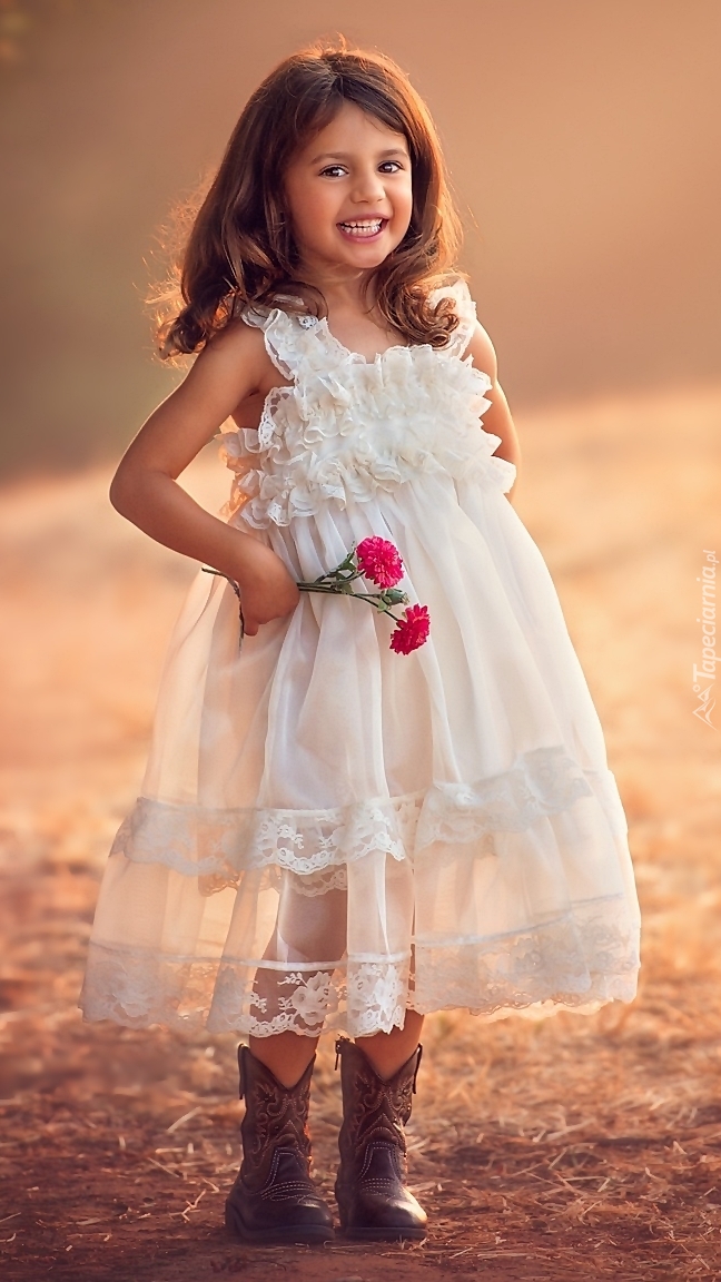 Edytor tapety: Uśmiechnięta dziewczynka z kwiatkami w ręku