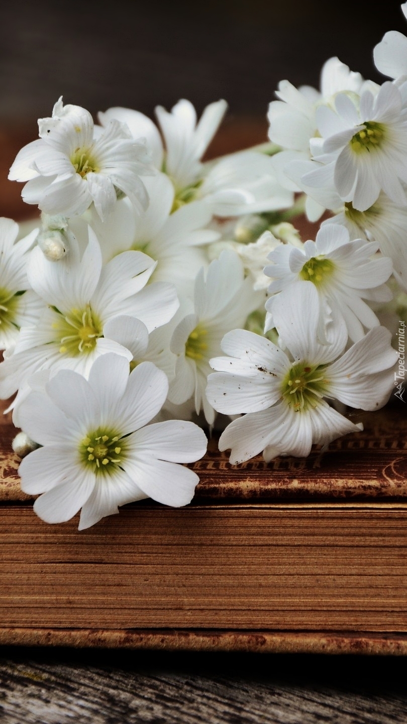 Edytor tapety: Kwiaty rogownicy polnej na książce