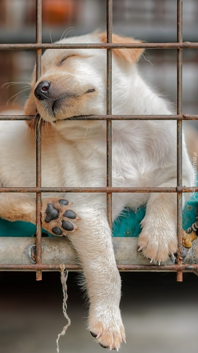 Edytor tapety: Szczeniak śpiący w zamkniętej klatce