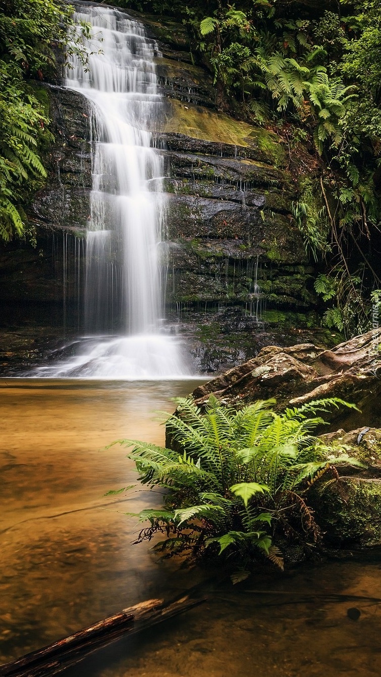Edytor tapety: Kaskadowy wodospad na skałach