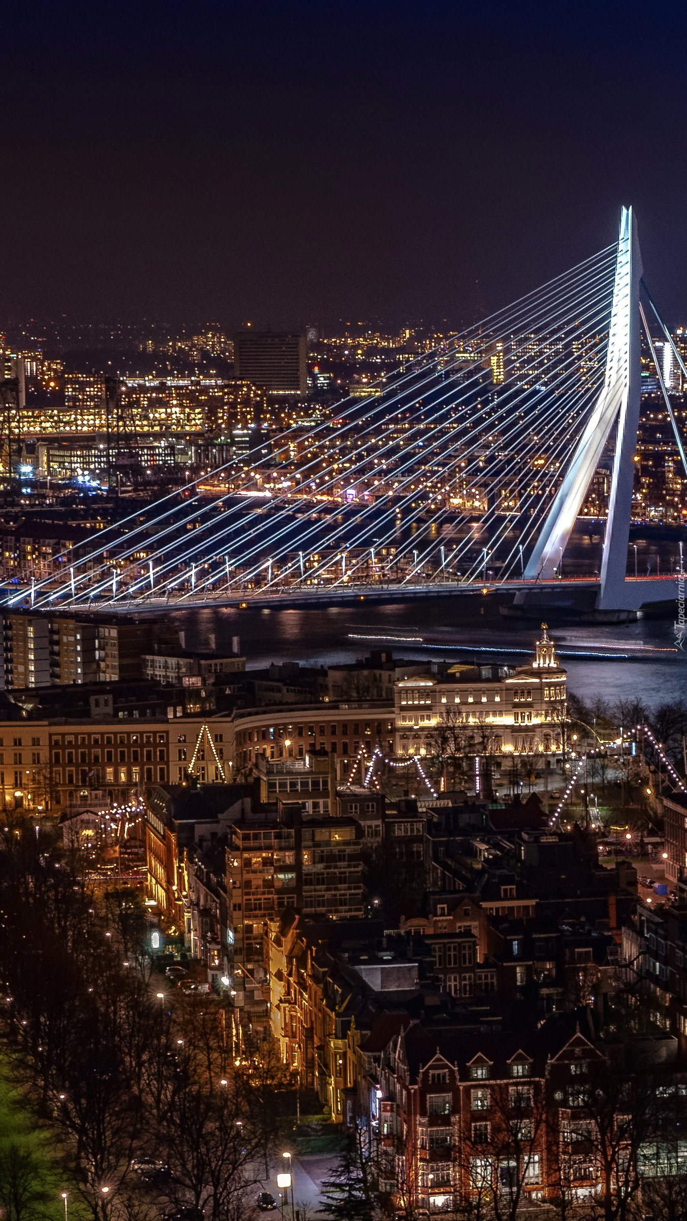 Edytor tapety: Panorama Rotterdamu nocą