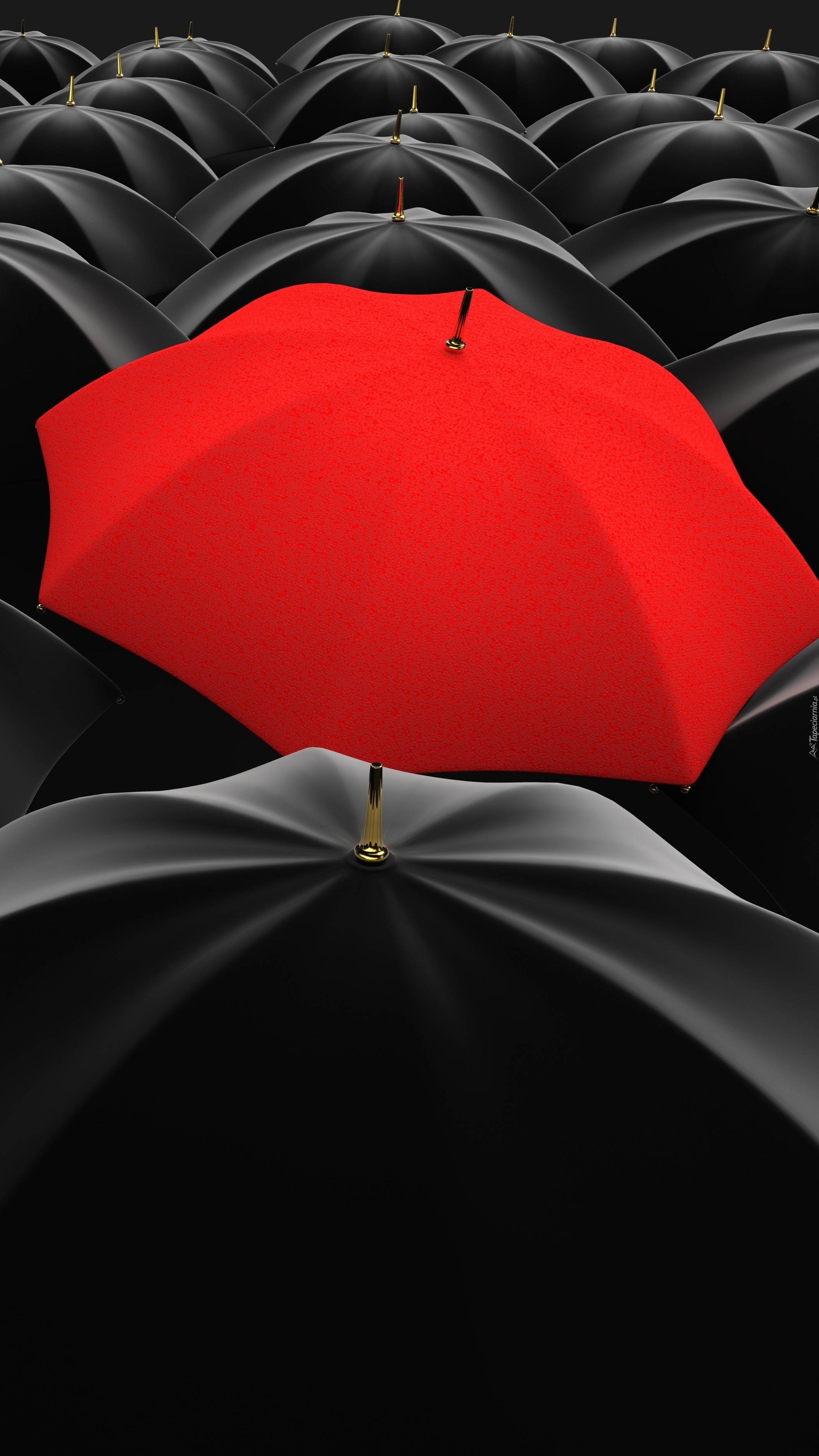 Edytor tapety: Czerwony wśród czarnych parasoli