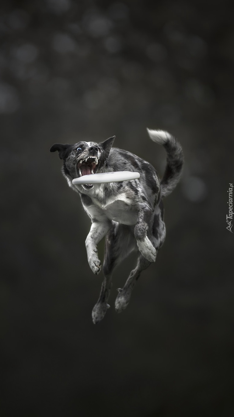 Edytor tapety: Wysoki skok psa z frisbee