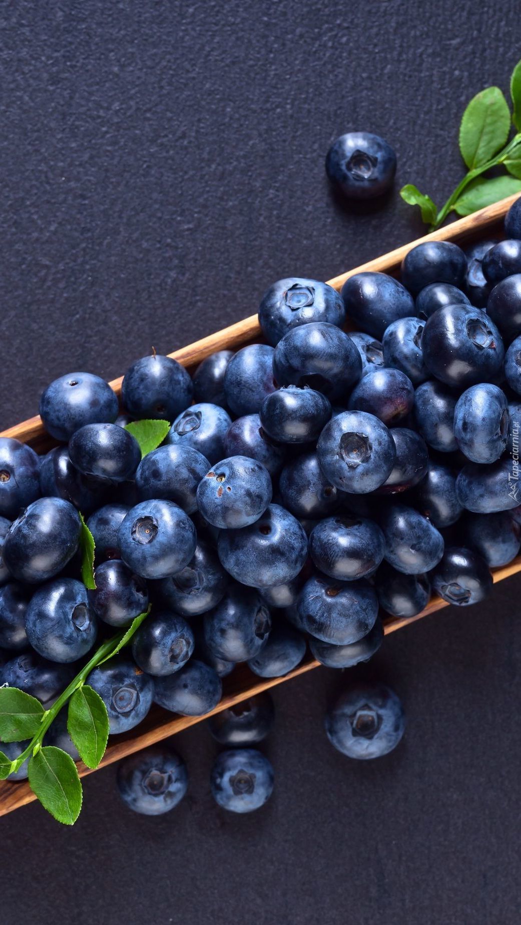 Edytor tapety: Leśne borówki w drewnianym pojemniku