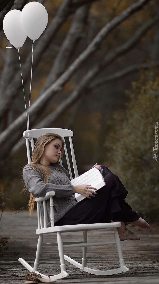 Edytor tapety: Kobieta na fotelu czytająca ksiażkę