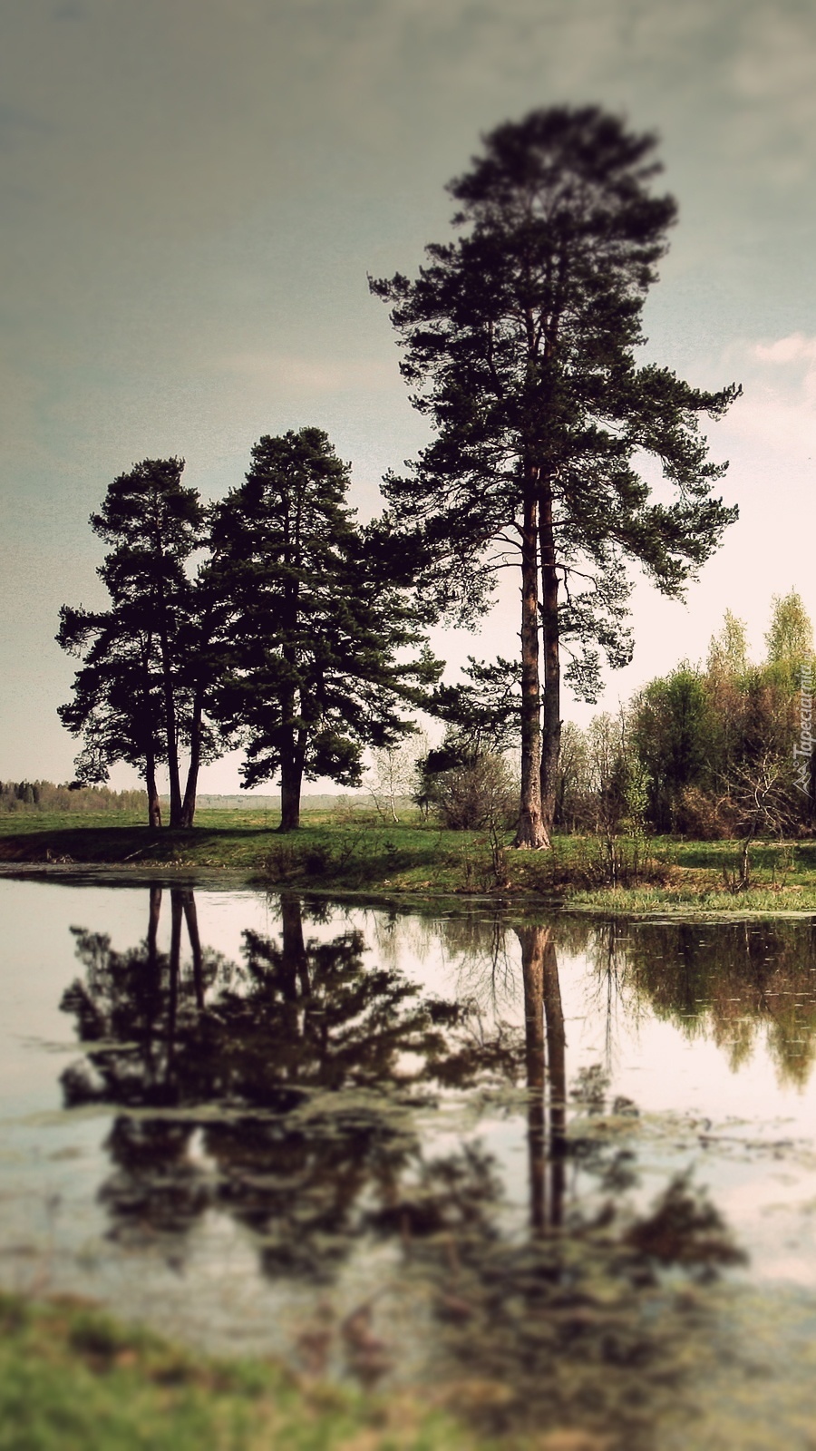 Edytor tapety: Drzewa przeglądają się w rzece