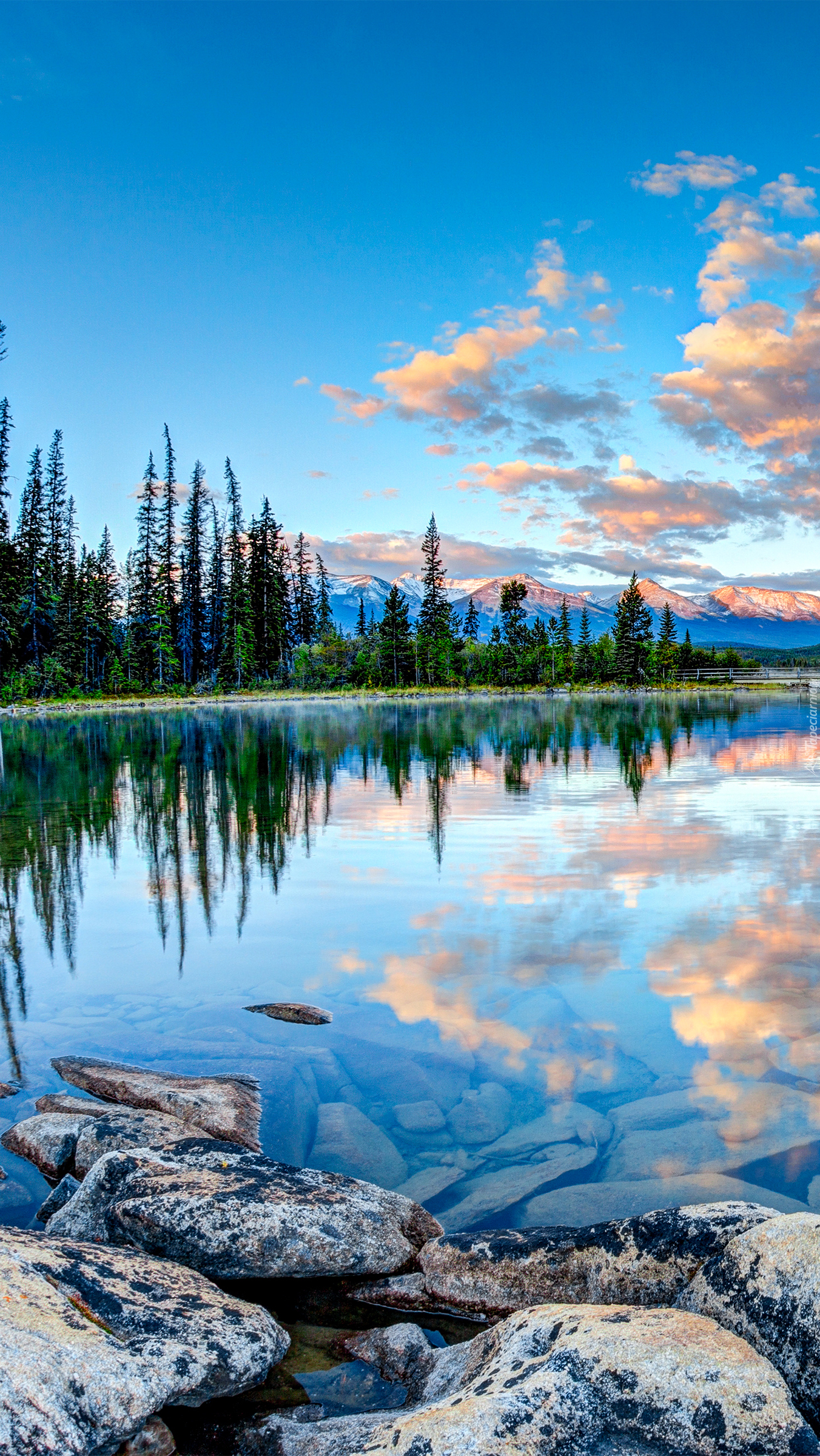 Edytor tapety: Jezioro lustrem dla chmur na niebie