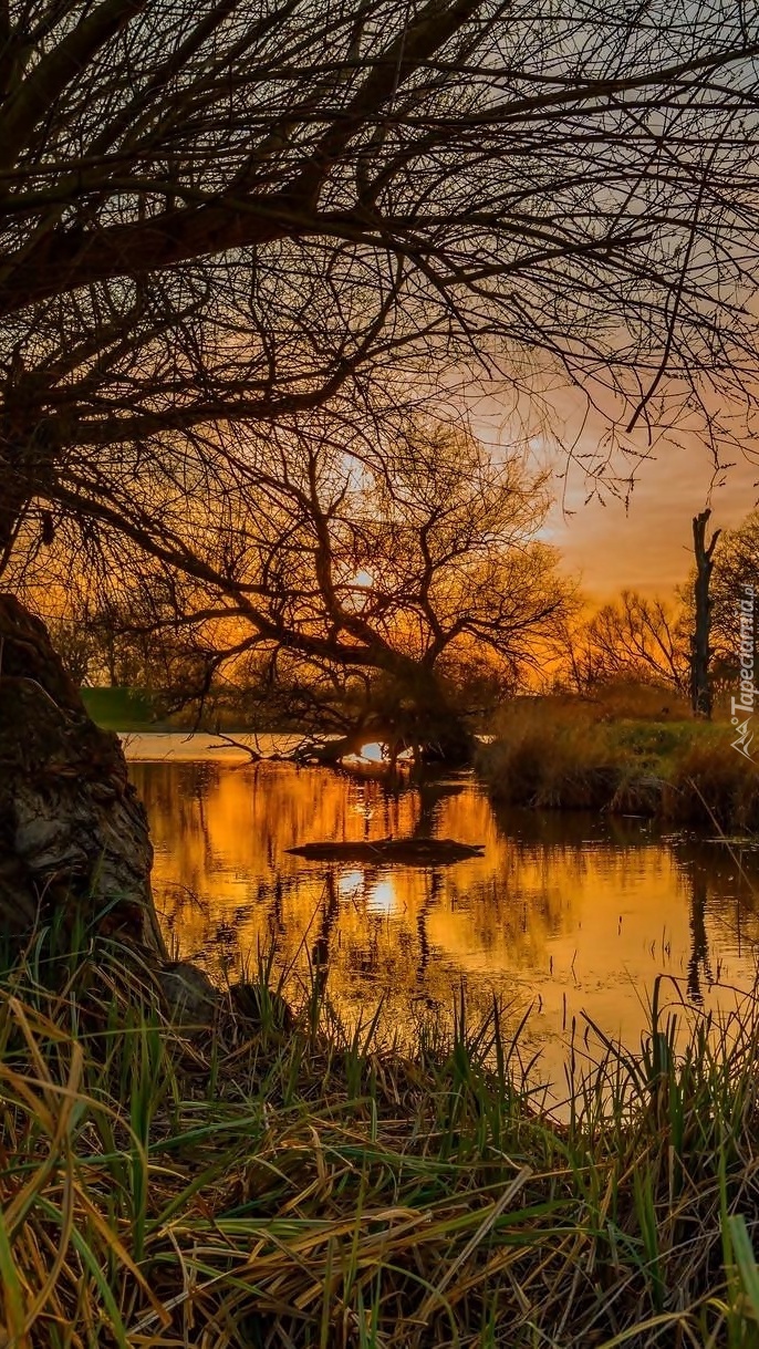 Edytor tapety: Rzeka w blasku zachodzącego słońca