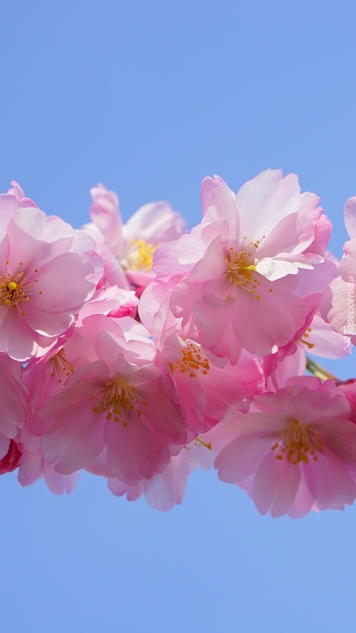 Edytor tapety: Kwiaty różowej wiśni na niebie