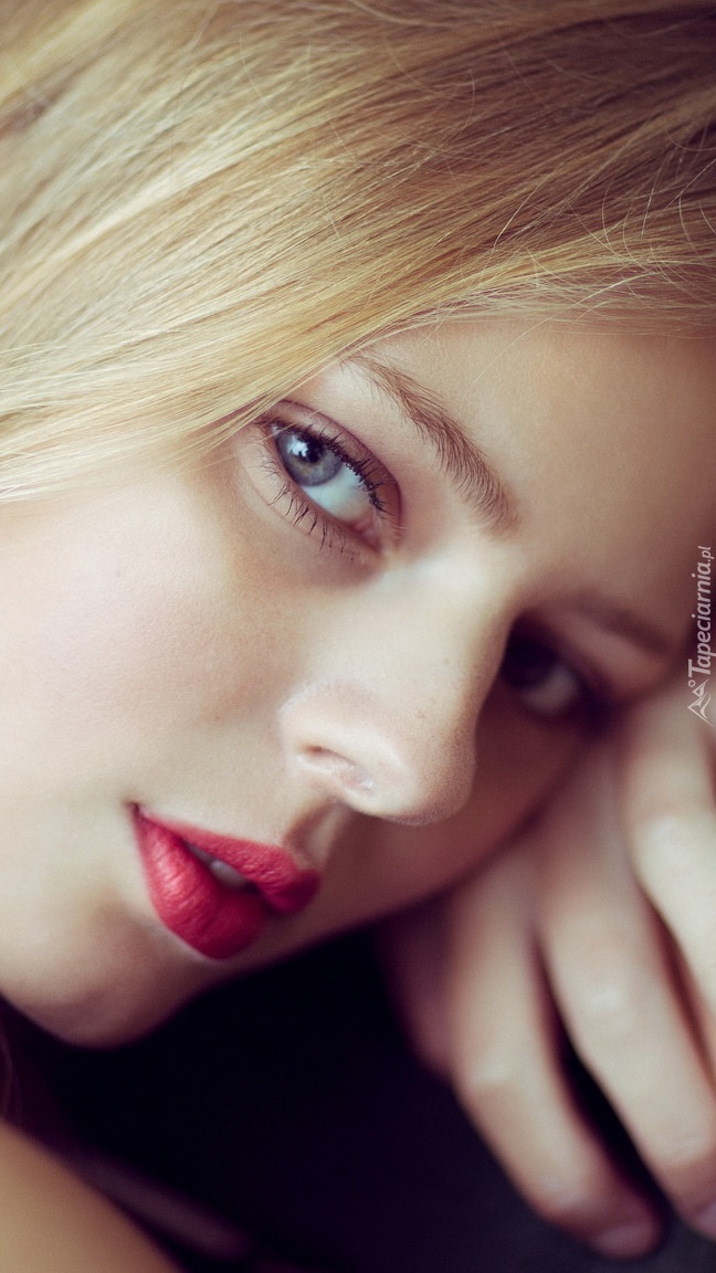 Edytor tapety: Blondynka z pomalowanymi ustami