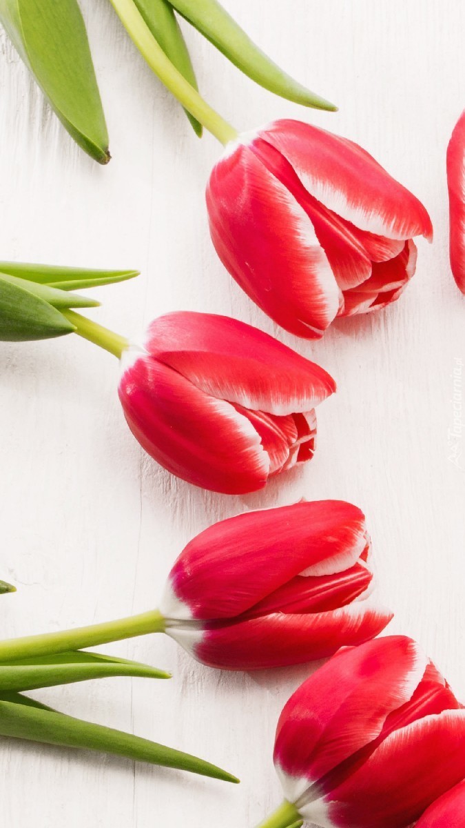 Edytor tapety: Tulipany na białych deskach