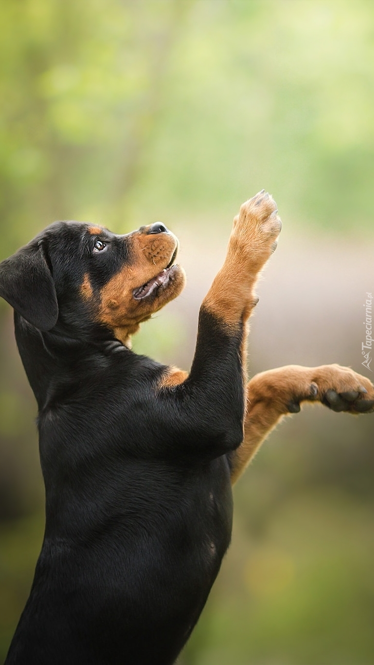 Edytor tapety: Szczeniak rottweilera w pozycji proszącej