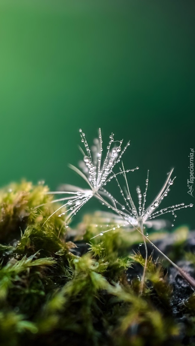 Edytor tapety: Niełupki w kroplach rosy na mchu