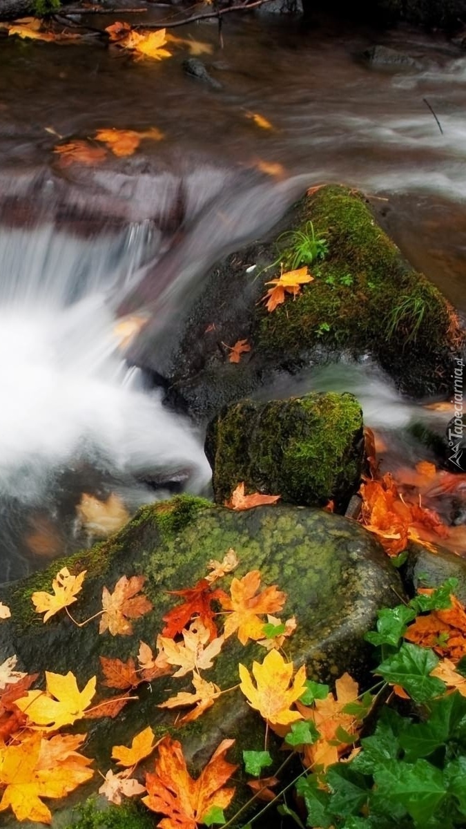 Edytor tapety: Liście płyną z wodospadem