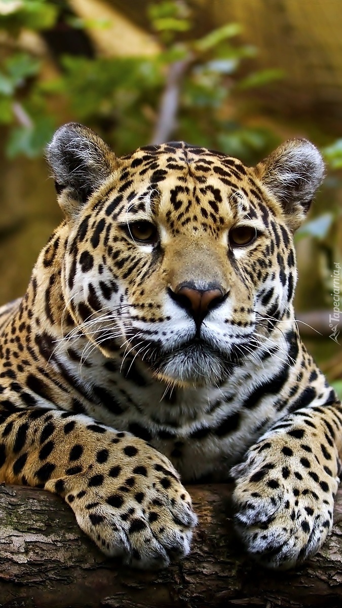 Edytor tapety: Jaguar wylegujący się na drzewie