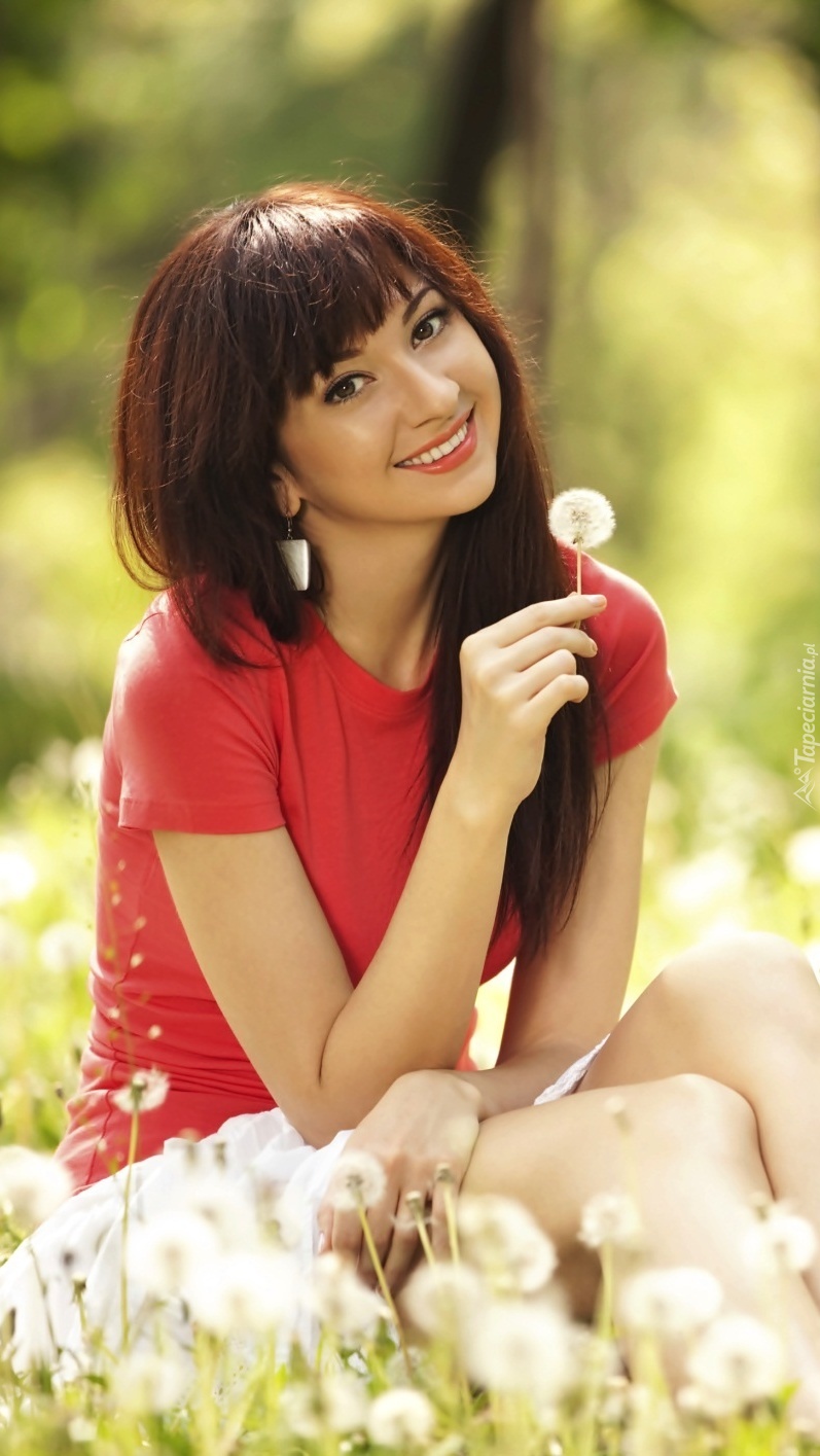 Edytor tapety: Uśmiechnięta kobieta z dmuchawcem w ręce