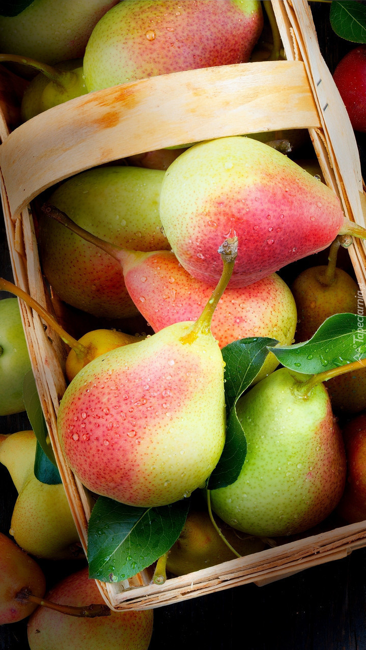 Edytor tapety: Dojrzałe gruszki w koszyku