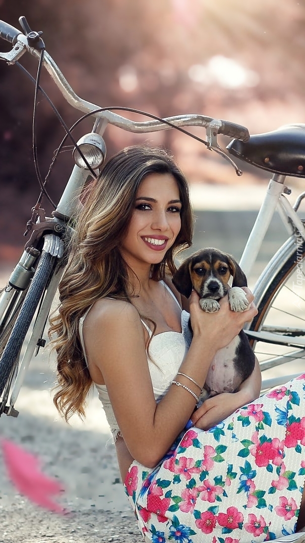Edytor tapety: Dziewczyna trzymająca szczeniaczka