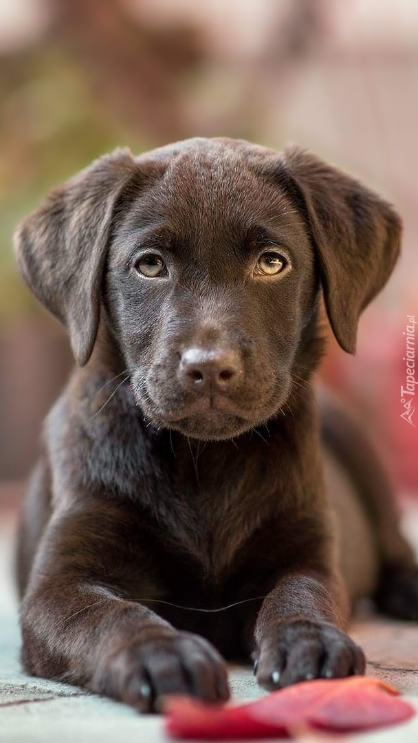 Edytor tapety: Czekoladowy labrador leżący na chodniku