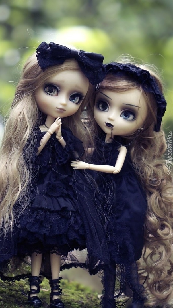 Edytor tapety: Laleczki stojące na mchu