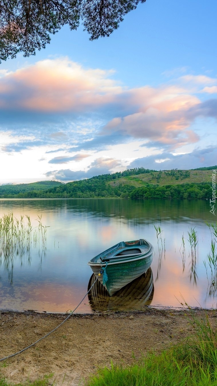 Edytor tapety: Łódka na brzegu jeziora