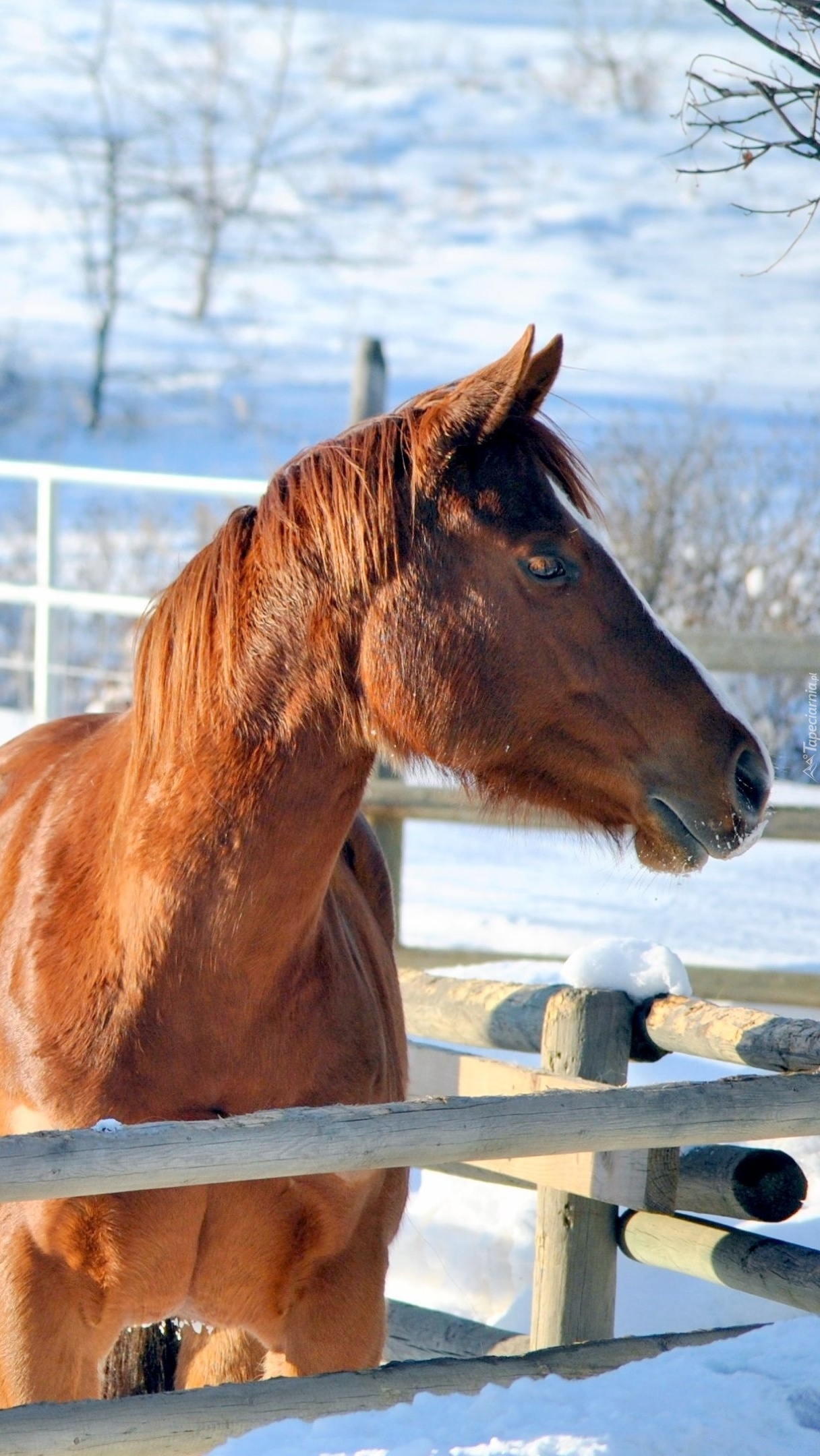Edytor tapety: Koń w zagrodzie zimą