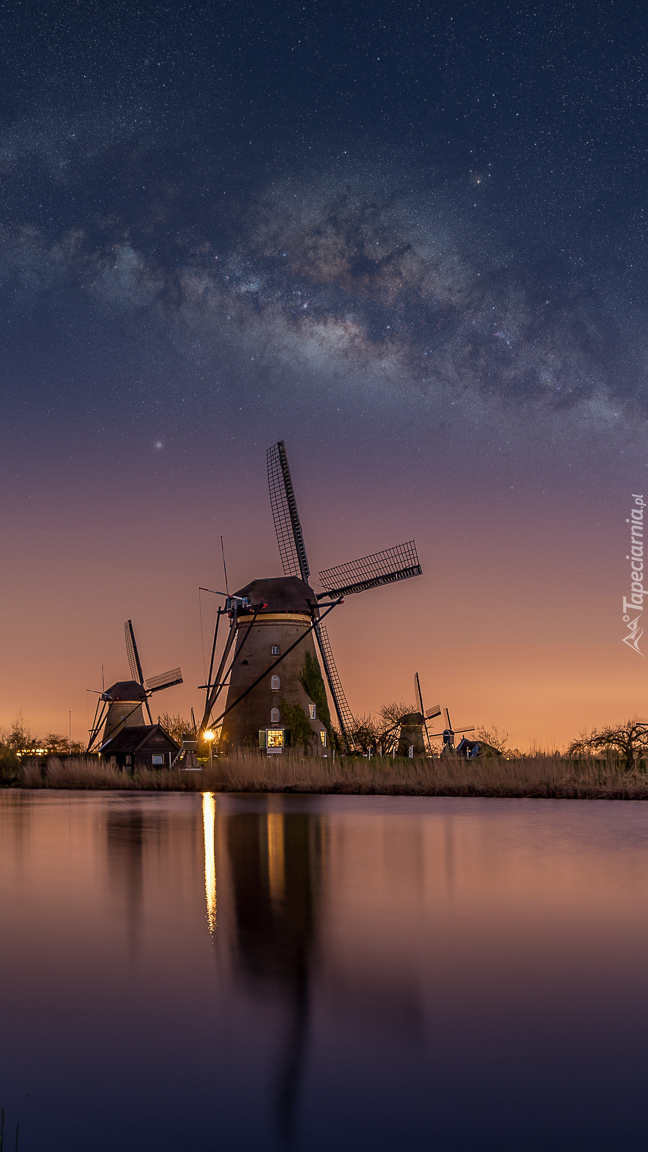 Edytor tapety: Gwiaździste niebo nad wiatrakami