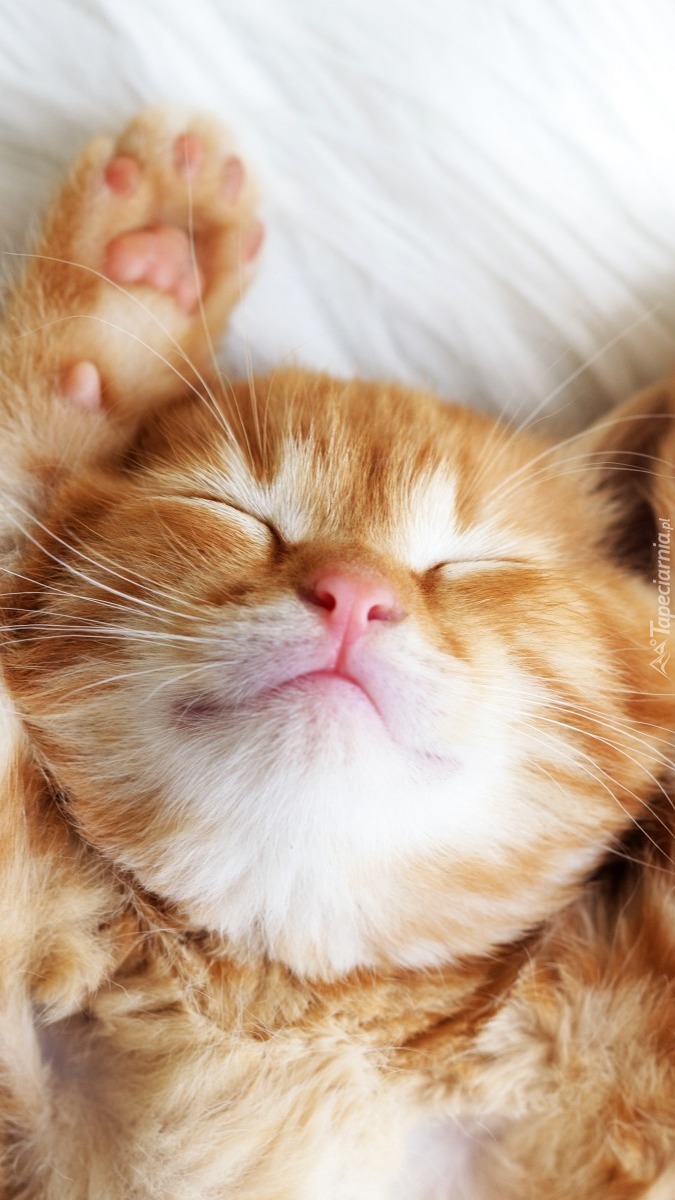 Edytor tapety: Śpiący rudy kotek