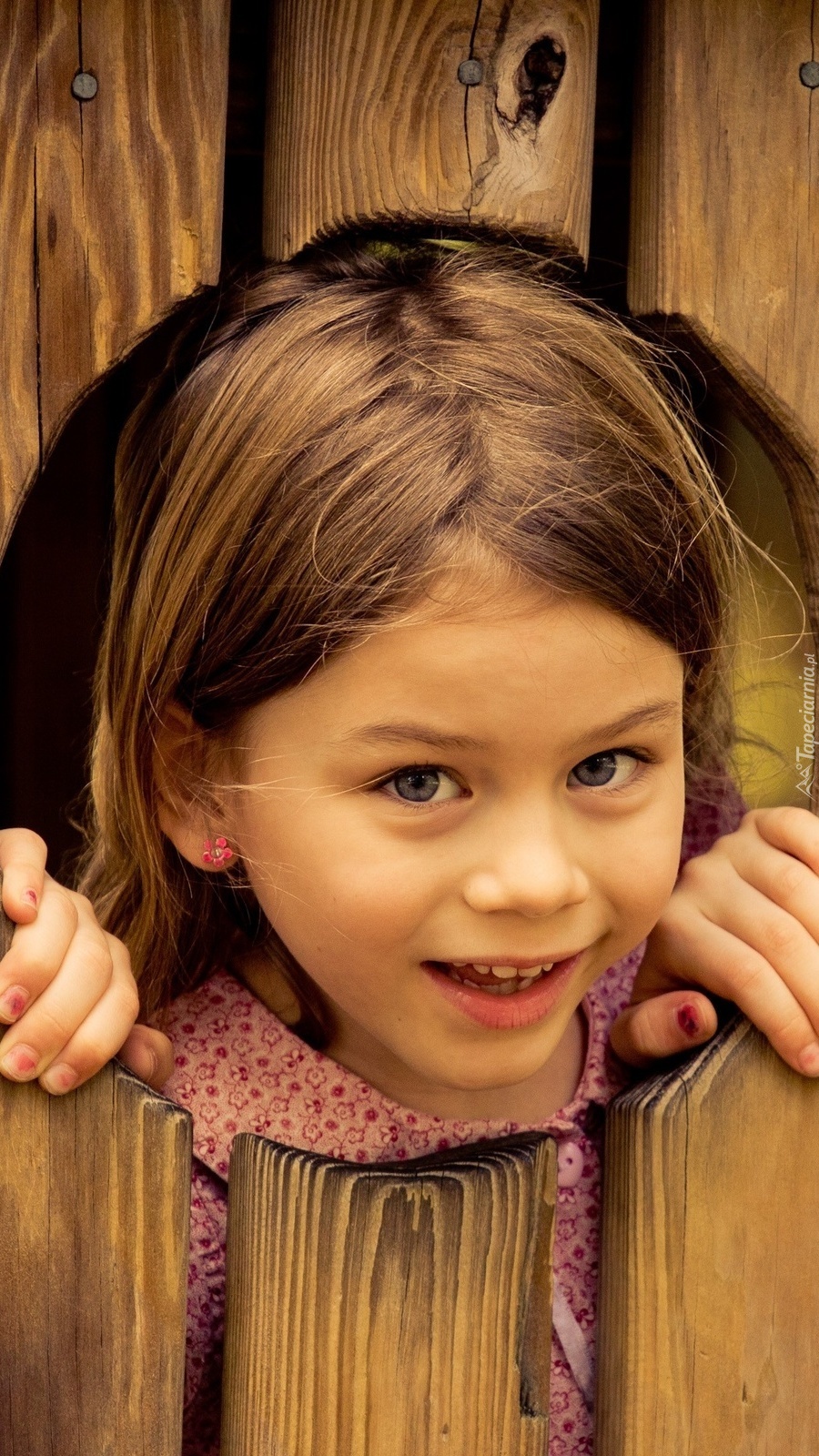 Edytor tapety: Dziewczynka wyglądająca przez dziurę w płocie