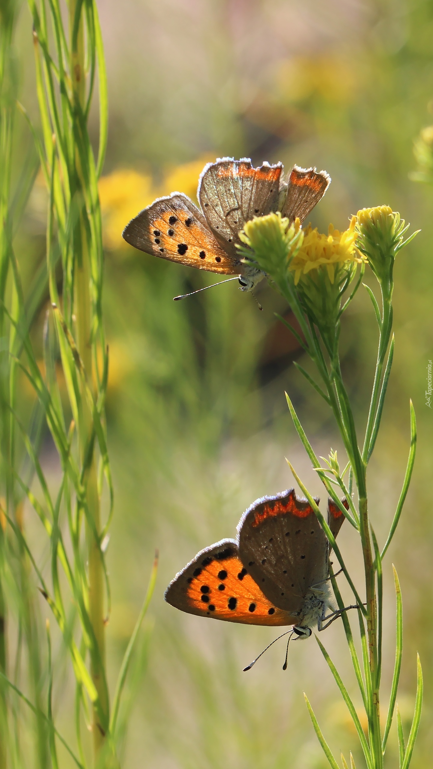 Edytor tapety: Dwa motylki czerwończyki na roślinie