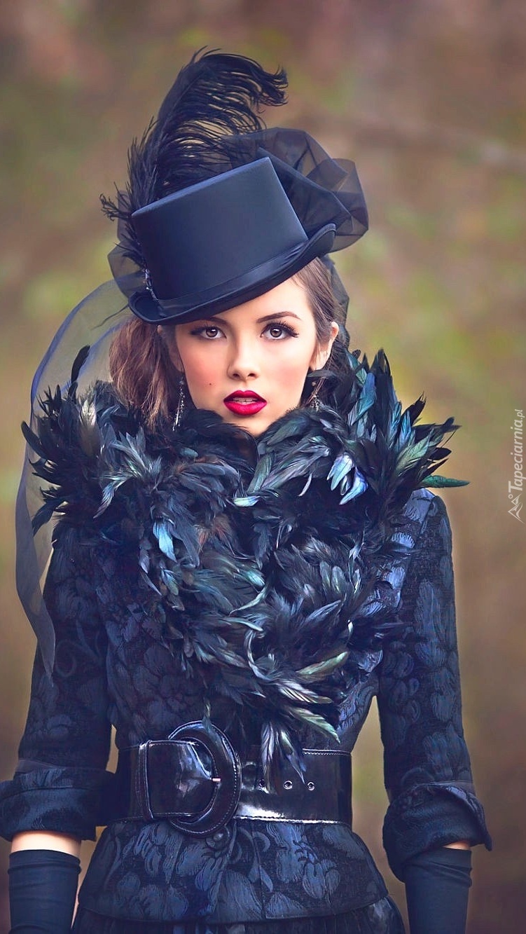 Edytor tapety: Kobieta w czarnym stroju i kapeluszu