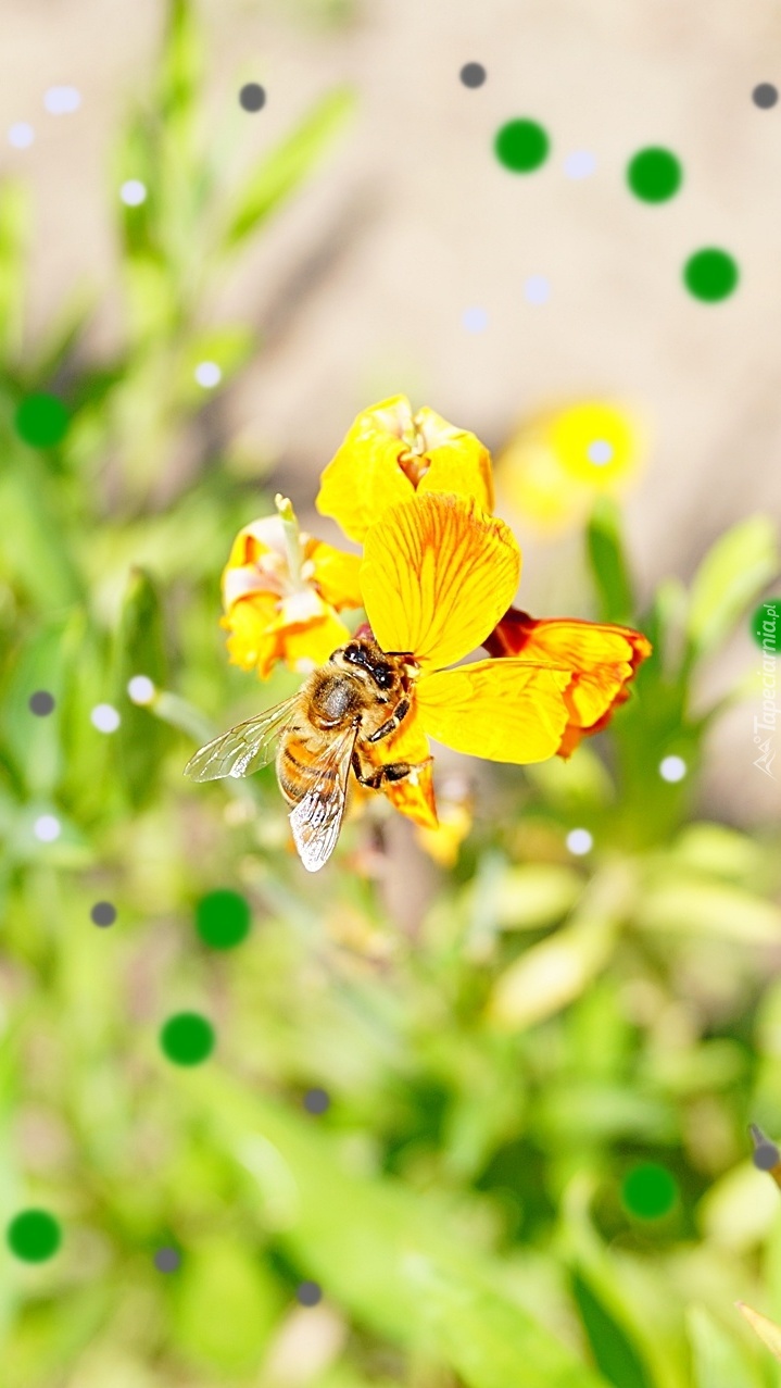 Edytor tapety: Pszczółka na żółtym kwiatku