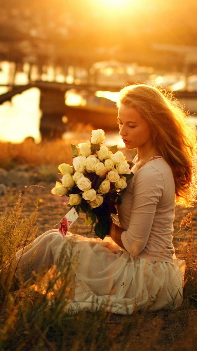 Edytor tapety: Dziewczyna z bukietem róż