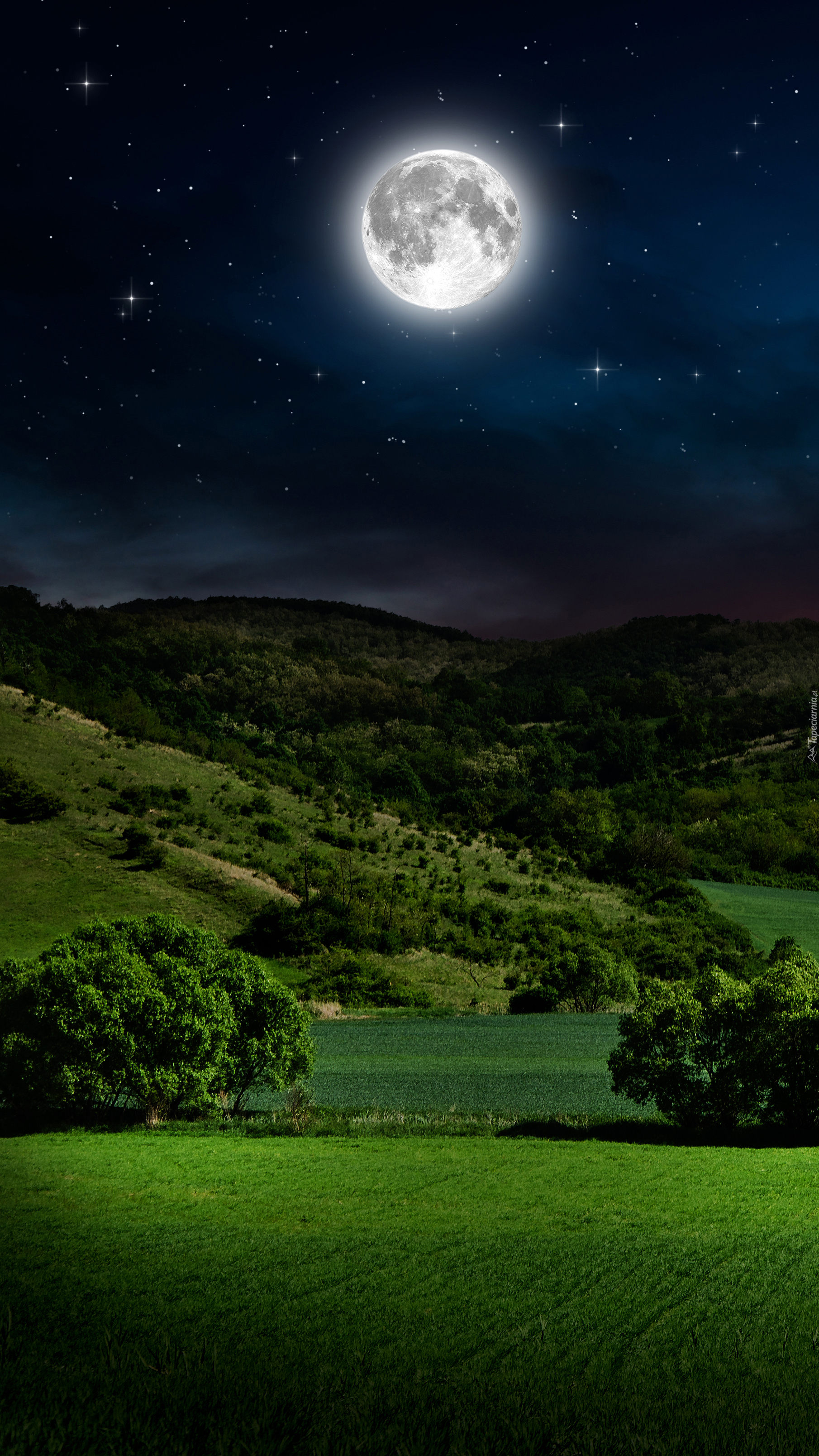 Edytor tapety: Księżyc nad wzgórzami
