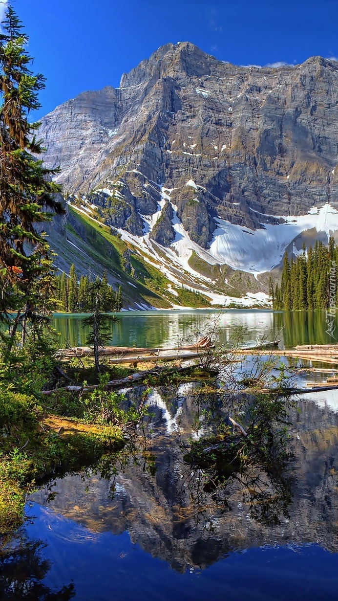 Edytor tapety: Górski las nad jeziorem