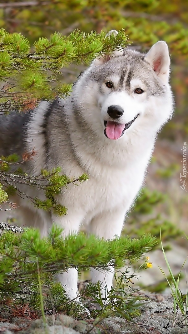 Edytor tapety: Zadowolony piesek w lesie