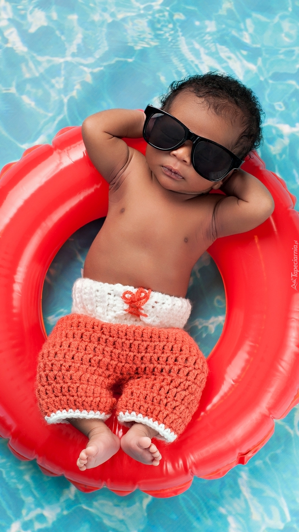 Edytor tapety: Chłopczyk w okularach przeciwsłonecznych w basenie