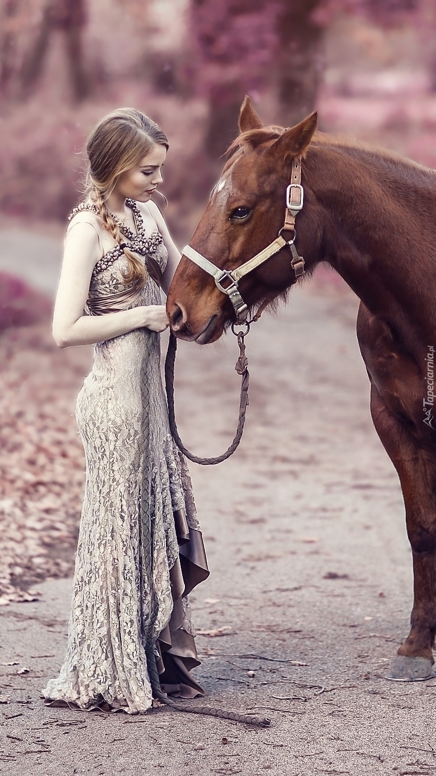 Edytor tapety: Kobieta na ścieżce z koniem