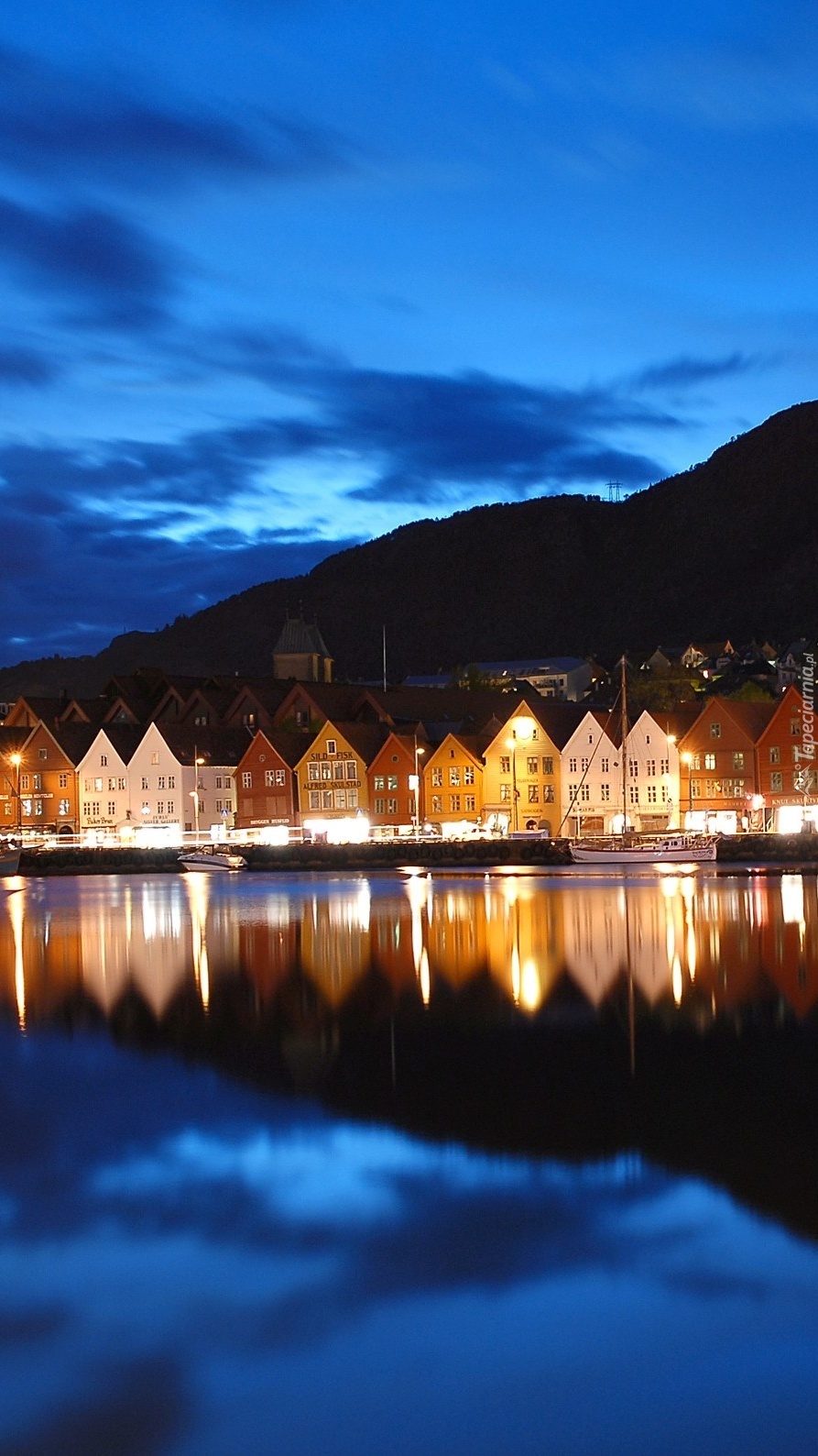 Edytor tapety: Domki w świetle nocą