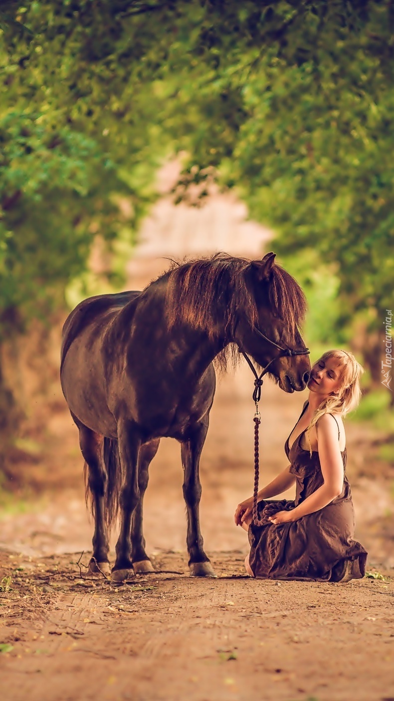 Edytor tapety: Kobieta z koniem na drodze