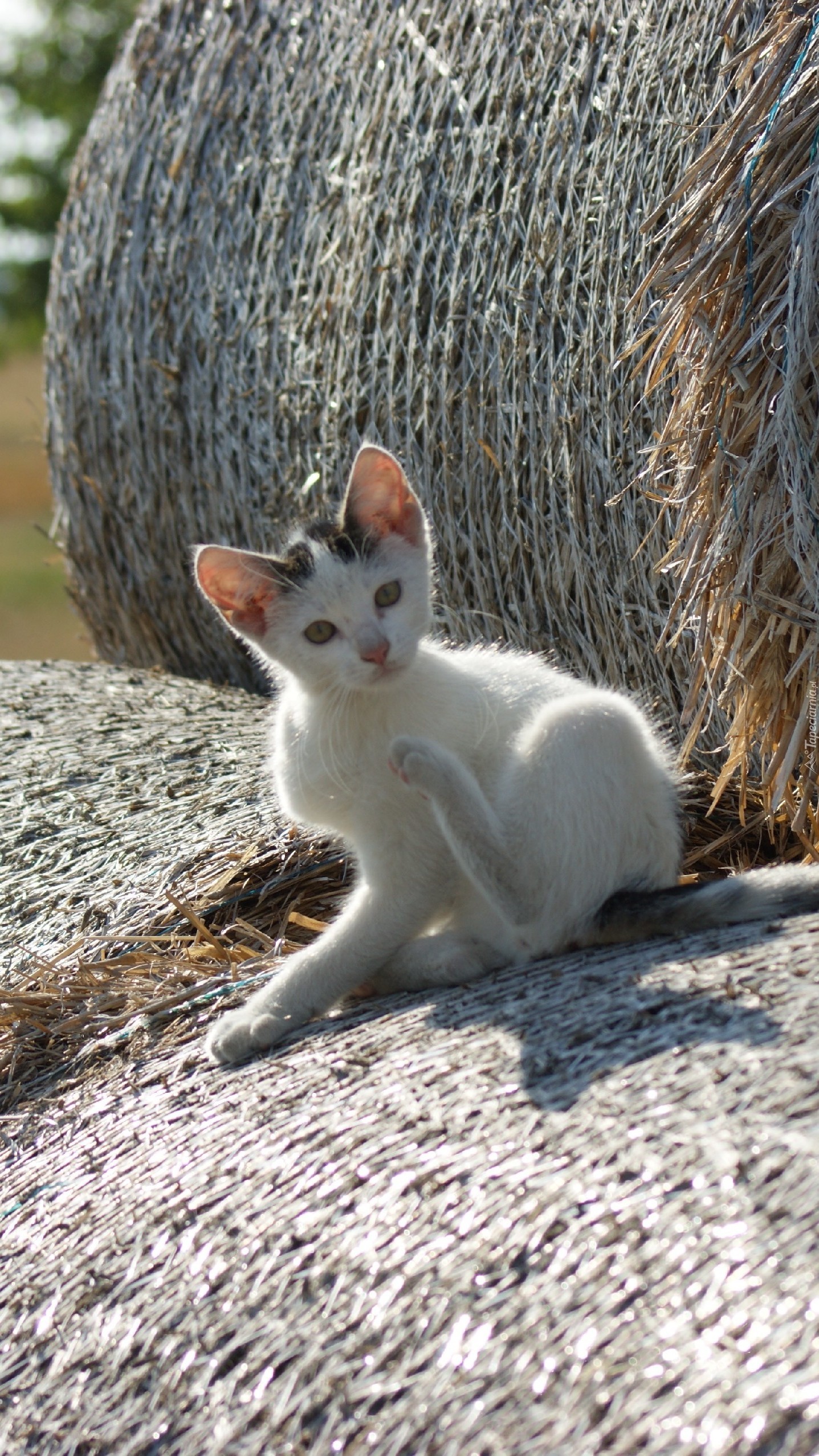 Edytor tapety: Kot na balotach słomy