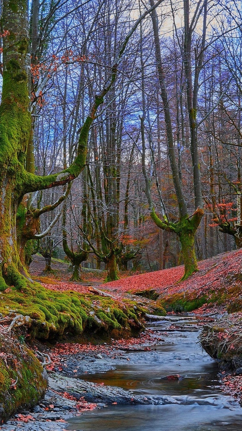 Edytor tapety: Rzeczka płynąca przez las jesienią