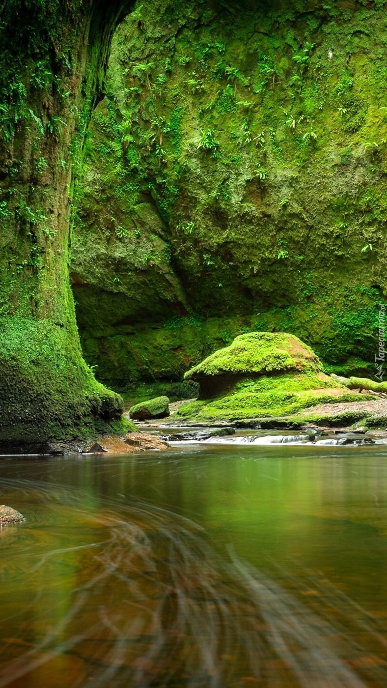 Edytor tapety: Zielone skały nad rzeką