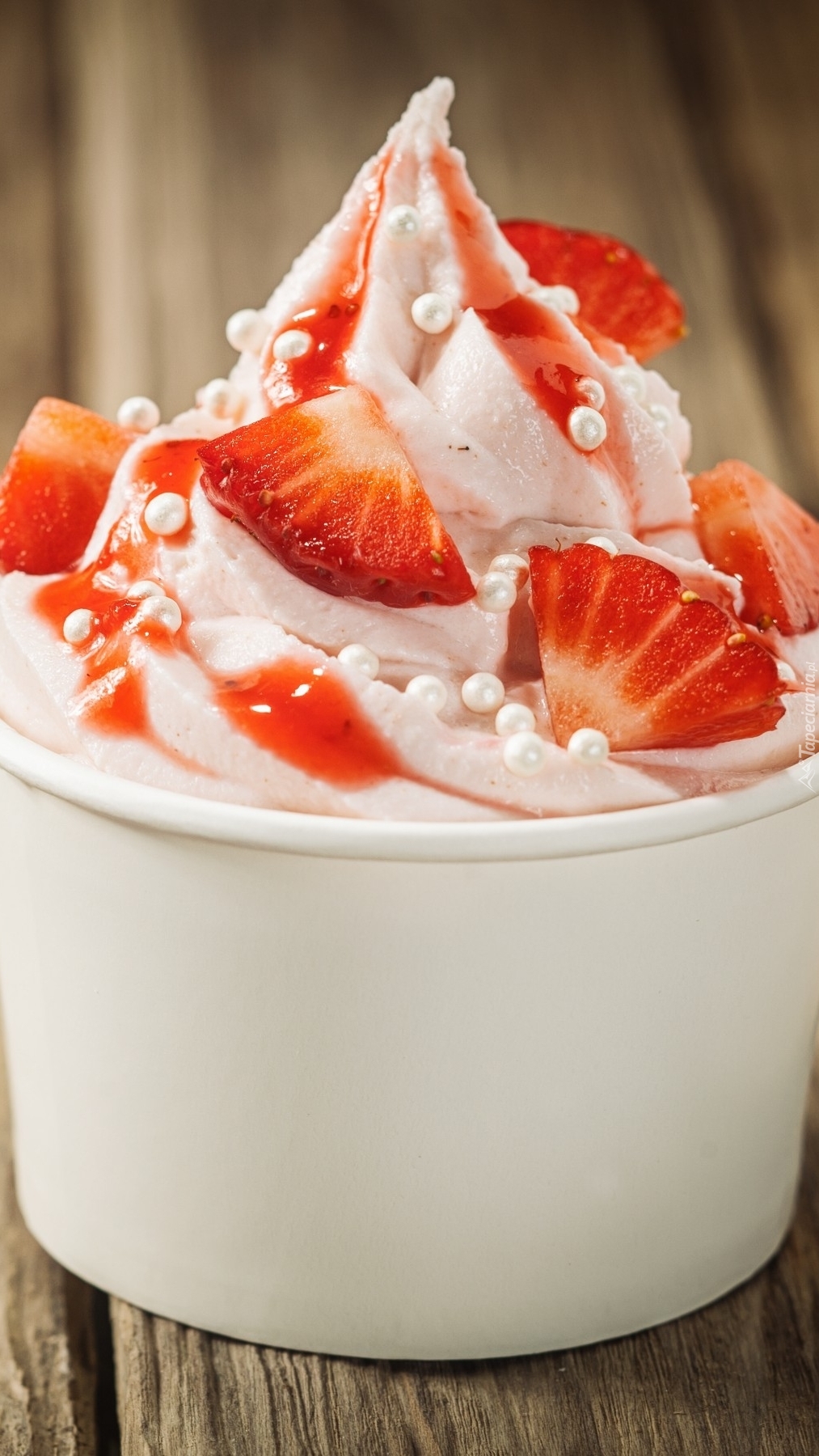 Edytor tapety: Smakowita porcja lodów z truskawkami
