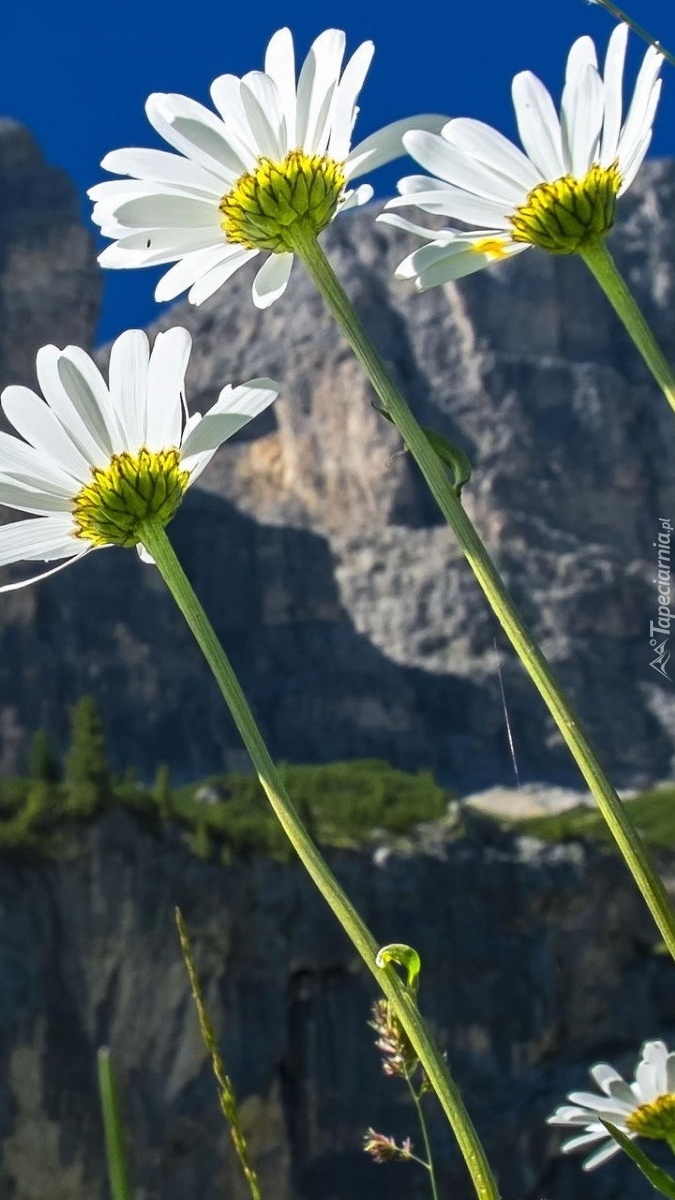 Edytor tapety: Margerytki na tle skał