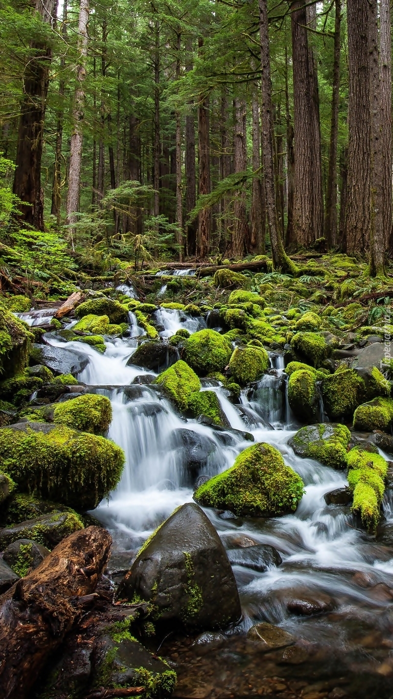 Edytor tapety: Omszałe kamienie w leśnym strumieniu