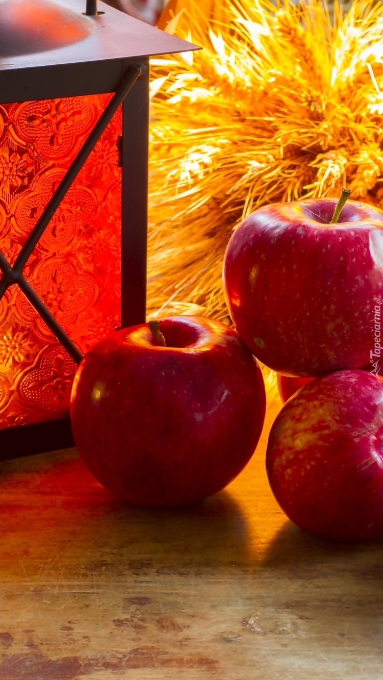 Edytor tapety: Jabłka z lampionem w jesiennej dekoracji